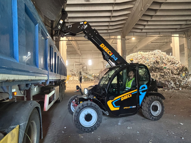 Dieci reports lower maintenance requirements and operating costs compared to conventional internal combustion telehandlers. The Apollo-e 26.6’s compact footprint and steering angle enable manoeuvring in confined spaces, while the powertrain supports integration with on-site photovoltaic energy systems.